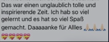 Diese Rückmeldungen berühren mich sehr und sie zeigen, wie nachhaltig transformierend diese Arbeit wirkt.